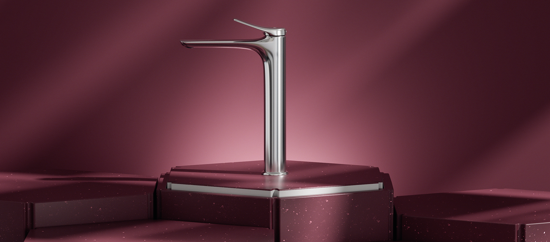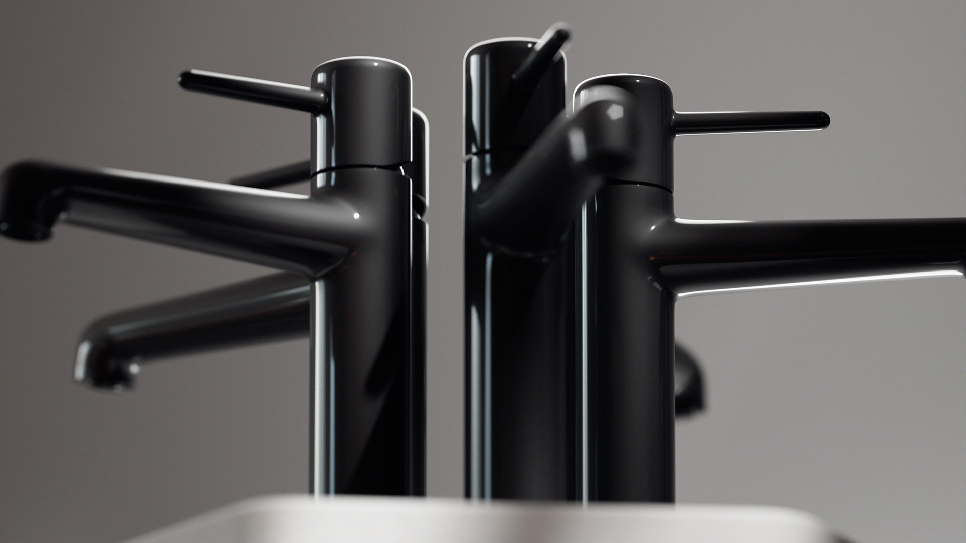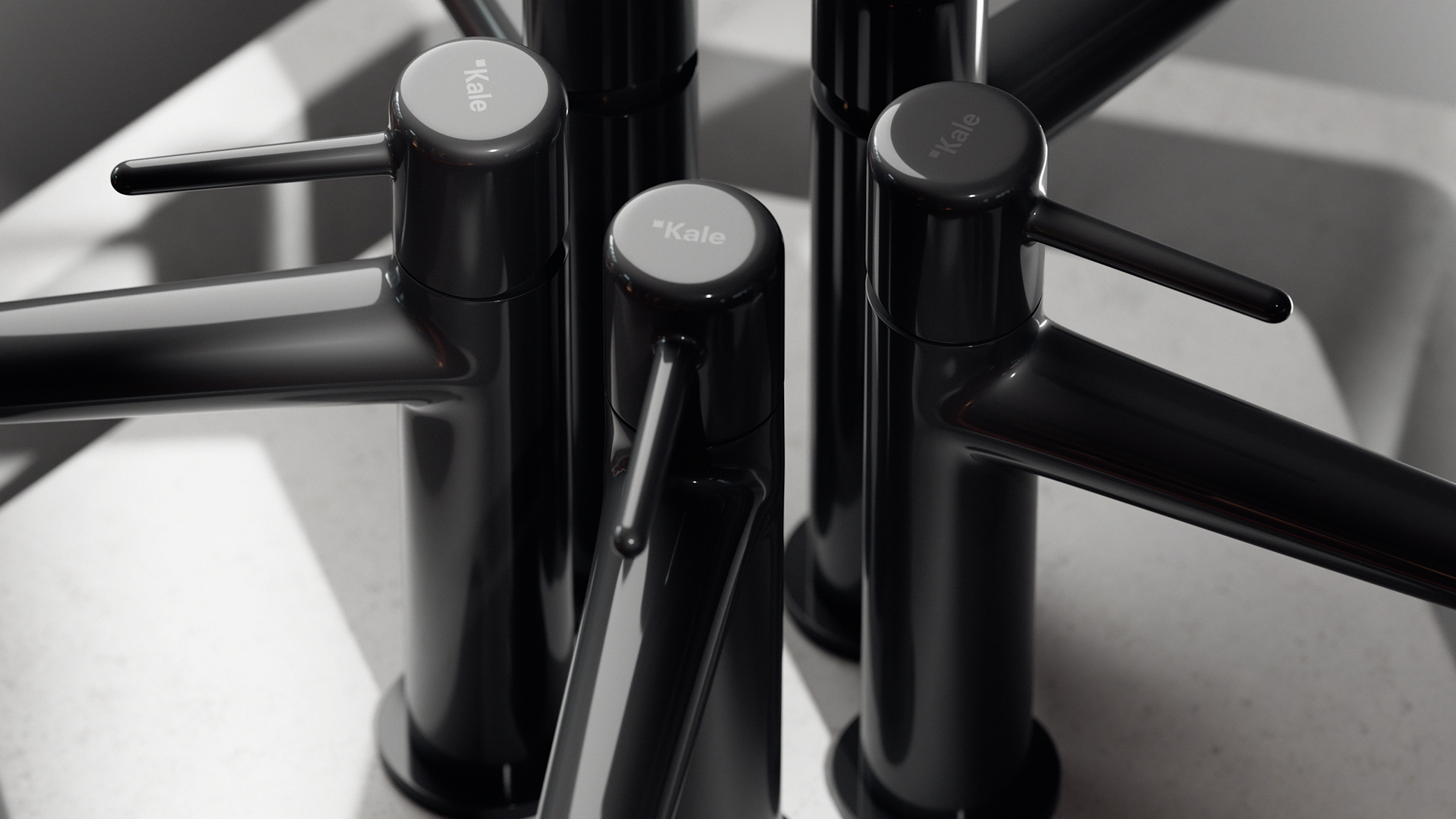 This 3D visualization project, developed for Kale, showcases a premium collection of bathroom and kitchen fixtures, exploring the harmony between form and finish. The series features a diverse range of materials, including polished chrome, sophisticated matte black, and elegant gold.